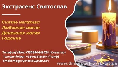 Ви відчуваєте, що життя зайшло в глухий кут? Стосунки руйнуються, плани не збуваються, а на душі тяжкість? Святослав - найсильніший екстрасенс і маг, готовий стати вашим провідником до гармонії, щастя й успіху.